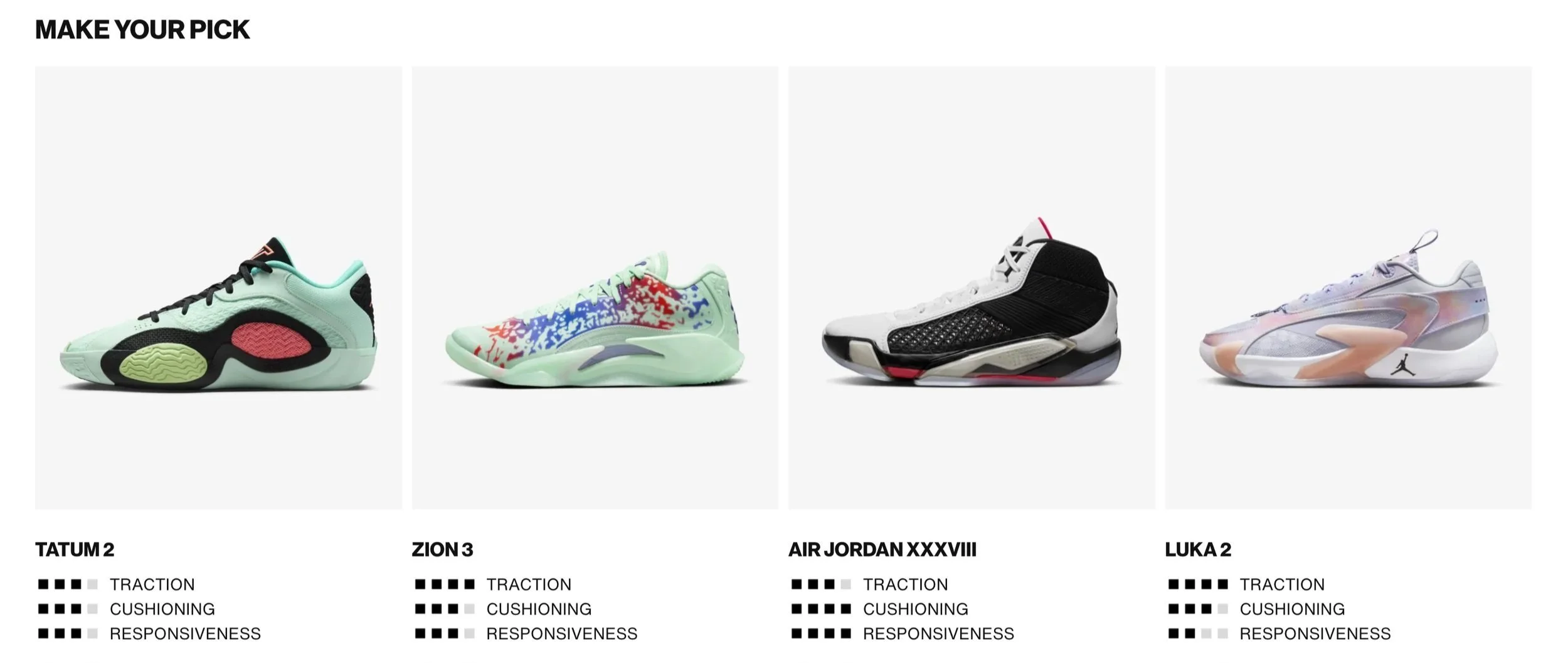 We need must use this footwear finder tool to re-introduce and re-enforce the tech and innovation of Jordan Basketball shoes, that ultimately makes our players better.
